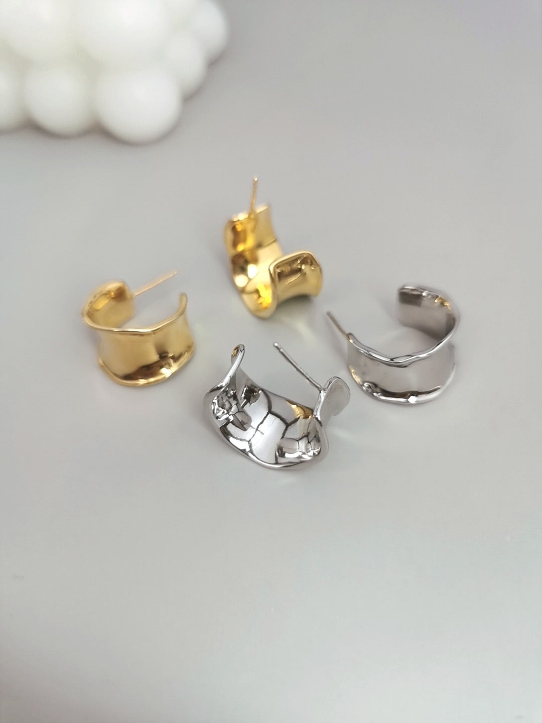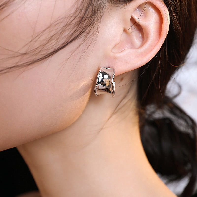 925 sterling silver earrings, very simple design, just the right size, with presence but not exaggerated. Perfect for everyday.