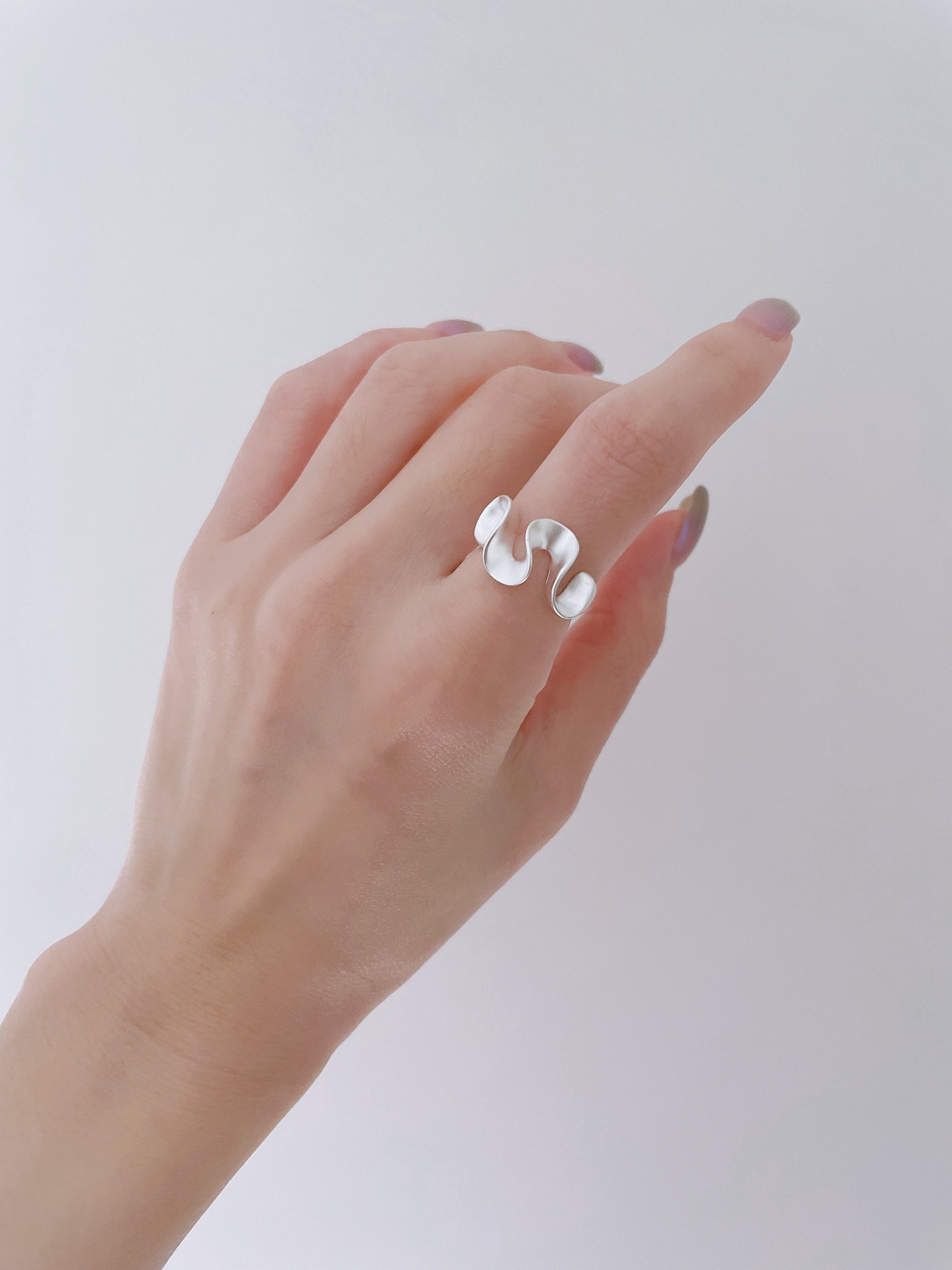 Made of 925 Sterling Silver, this ring features a curved and irregular design reminiscent of a ribbon. It is suitable for everyday wear as well as vacations, and it is a standout piece in your jewelry collection.