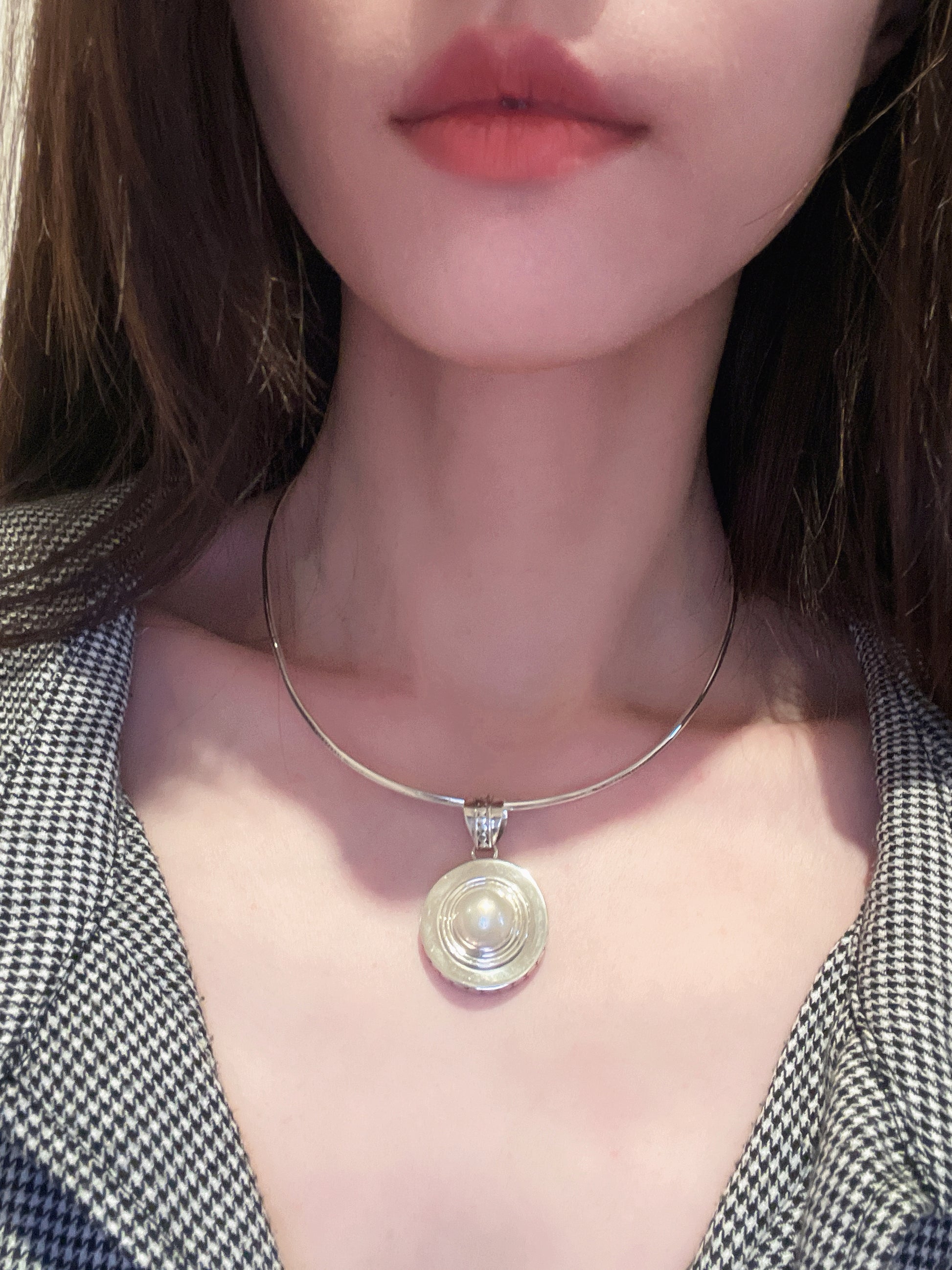 Mabe pearl necklace set by 925 sterling silver, with a 925 silver collar, can be worn daily or on vacation, very special and easy to match.